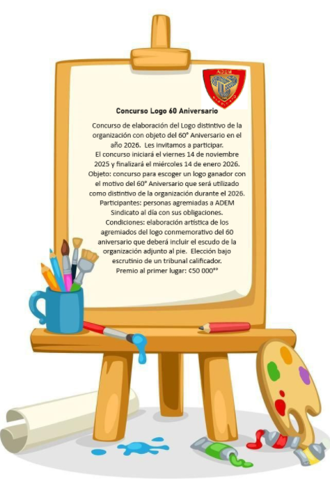 La Fiscalía de ADEM SINDICATO comunica a todas las personas agremiadas la apertura del período de inscripción para la elección de los cargos de Secretaría y Vocalía del Tribunal Electoral de ADEM Sindicato, en el marco de la segunda Asamblea General Ordinaria, que se llevará a cabo el día 21 de octubre de 2025, conforme a lo establecido en nuestro Estatuto.